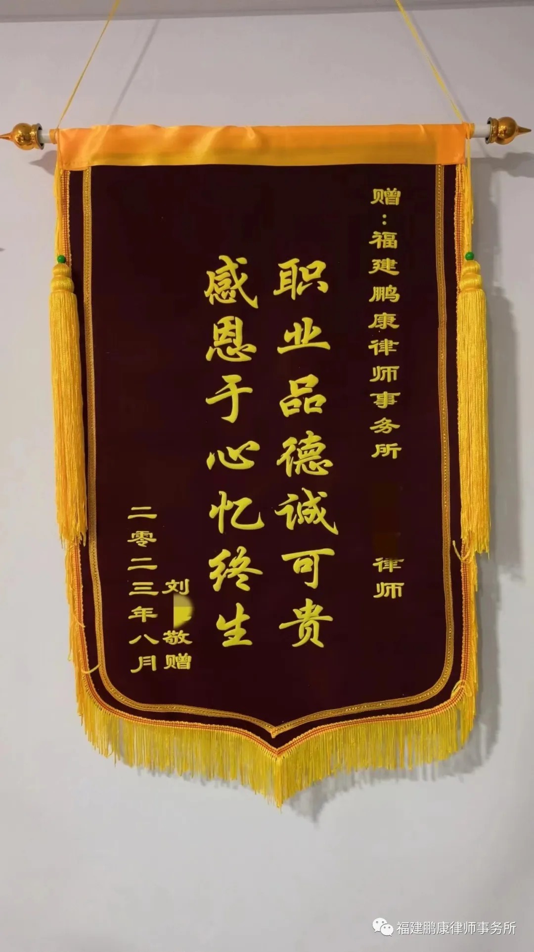 在办案过程中,承办律师多次与对方公司沟通后由办案机关组织调解,同时耐心向委托人解释法律的规定与办案流程,虽然调解过程比较曲折,但最终双方协商一致调解结案,使委托人以最快的时间获赔316887元。委托人获赔后对本所及承办律师的敬业精神表示高度认可,并送上“职业品德诚可贵、感恩于心忆终生”的锦旗以示感谢。