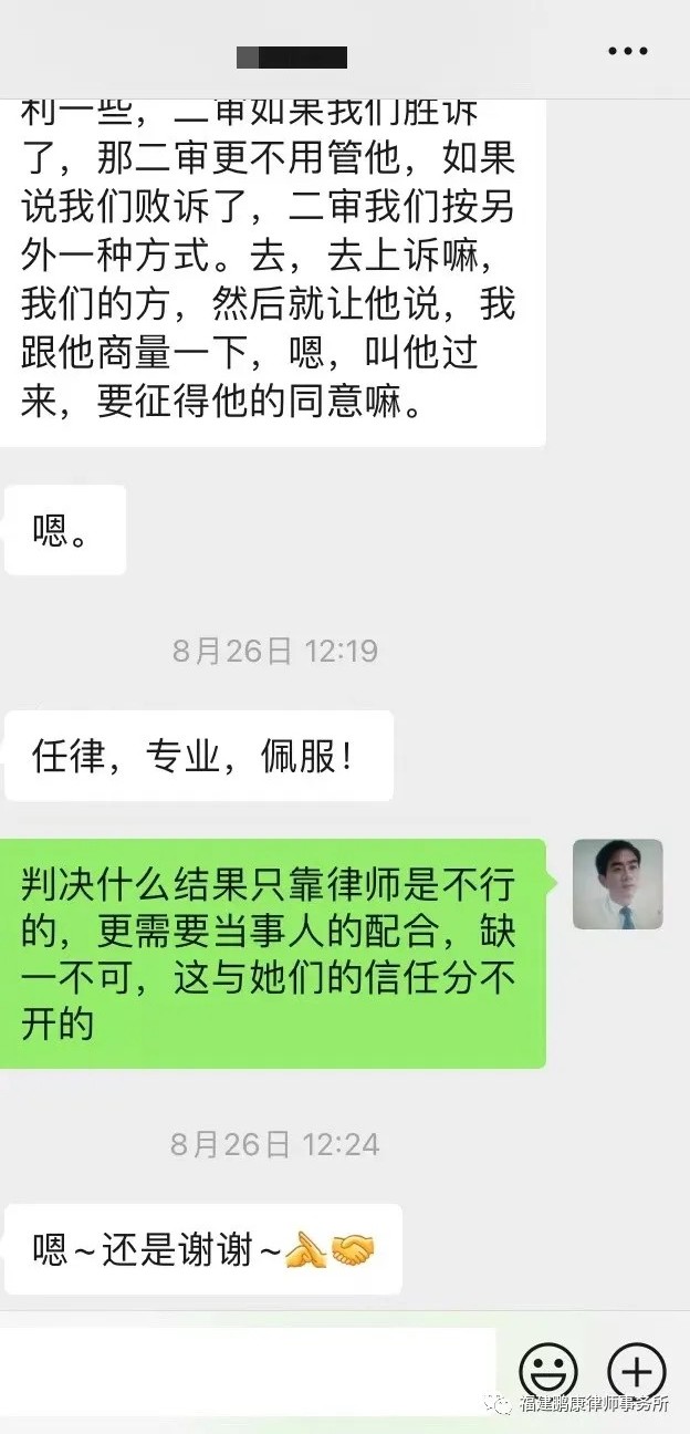 在该案的办理过程中,委托人吴某与律师建立起了高度的信任关系,同时承诺无论结果如何均不责怪律师,使得律师在后期的办理过程中更加的全力以赴,最终一审法院判决驳回徐某等人的全部诉讼请求。本案的办理结果,使得委托人不仅成功地拿回了餐饮门店的经营管理权,还零成本地获得了胜诉,不用对徐某等人的起诉承担任何法律责任。拿到胜诉判决后,委托人及其家属对律师的专业度表示认可同时向律师表达了谢意!