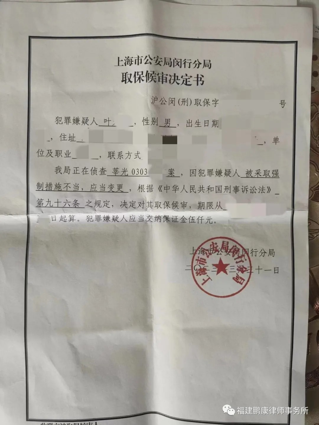 叶某家属在2023年3月8日委托鹏康律师为其提供辩护,本所受理该案后指派刑事律师参与了会见,并提供取保等法律帮助,于2023年3月31日取保成功。叶某取保出来后反复与鹏康律师沟通案情并调取了银行流水等证据,鹏康律师从该等证据中反复计算与论证支付结算金额,经研究认为,叶某等人的行为未达到刑法所规定的“情节严重”的程度,鹏康律师又与公安反复沟通并出具不构成犯罪的法律意见。