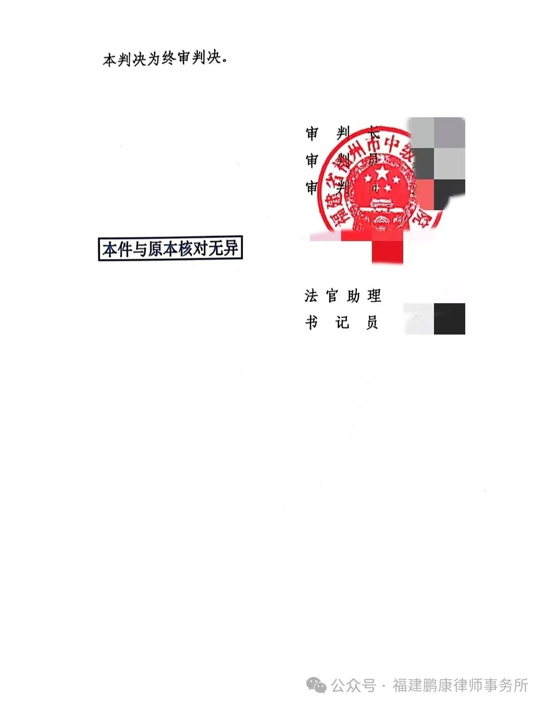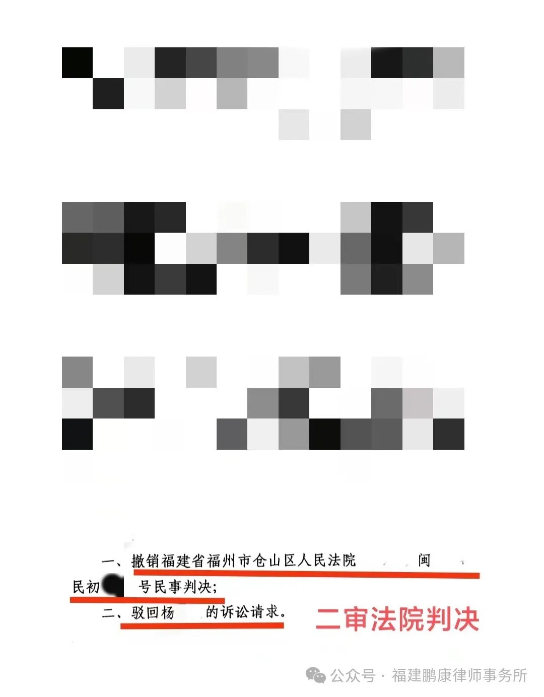 本案承办律师围绕着集体研究确定的办案思路展开二审的上诉工作,最终福州市中级人民法院采纳本所律师全部意见,撤销一审法院判决,驳回杨某诉讼请求。案件办结后,委托人表达了对律师工作及办案水平的高度认可。