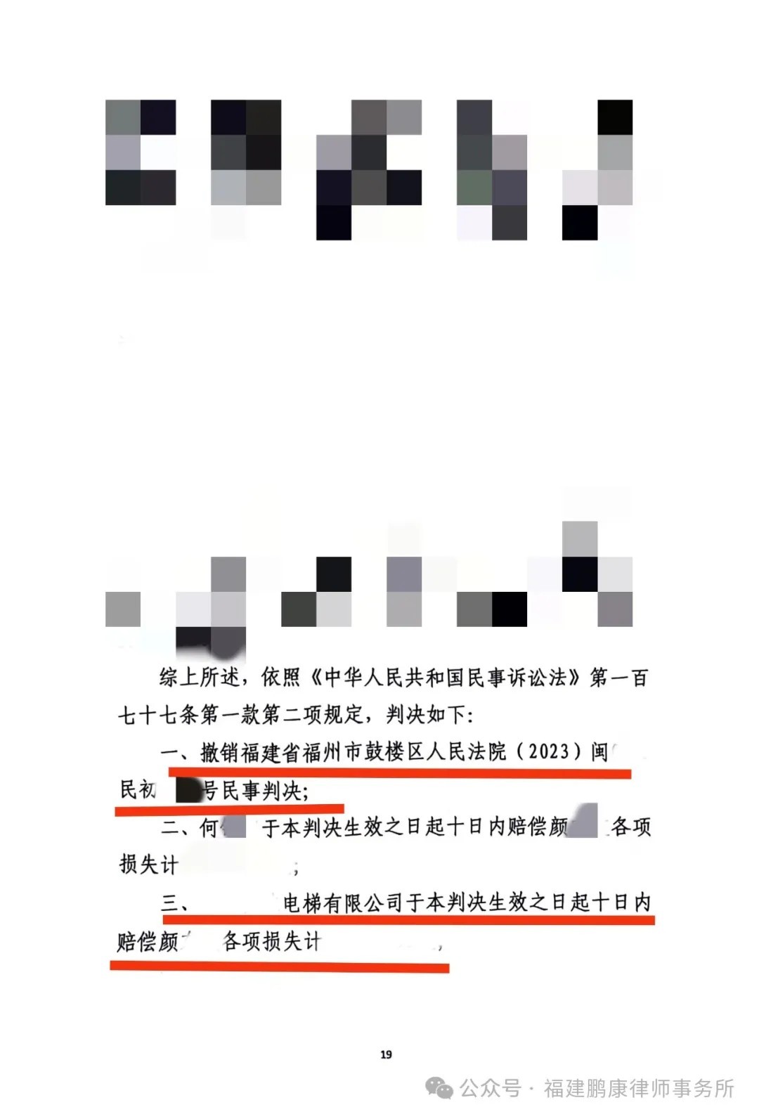 在办案过程中,为维护委托人颜某的权益,承办律师多方调查取证并多次与二审法院承办法官沟通,同时耐心向委托人解释法律的规定与办案流程,最终二审判决电梯公司也应向委托人承担赔偿责任,使委托人的赔偿款项能够成功获赔。