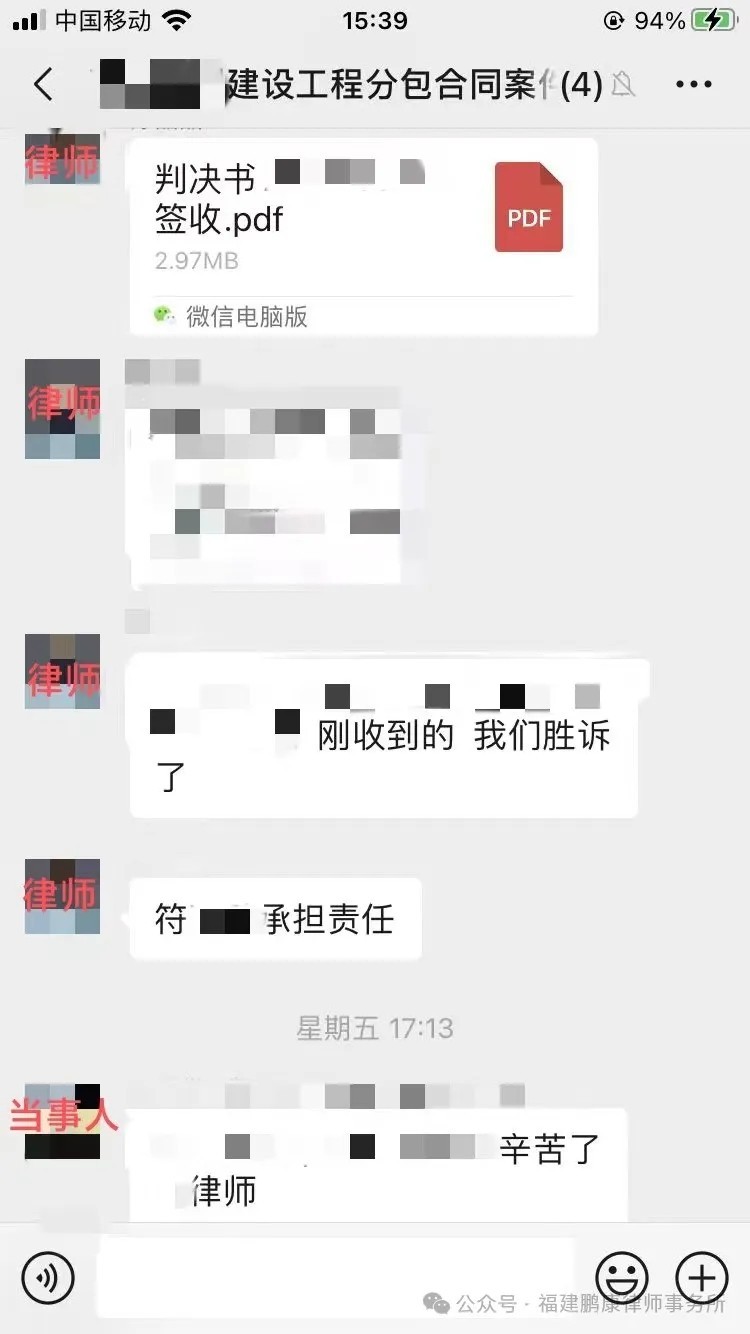 成功案例 | 委托人某建筑公司因建设工程分包合同一案成被告,经本所代理后成功获胜