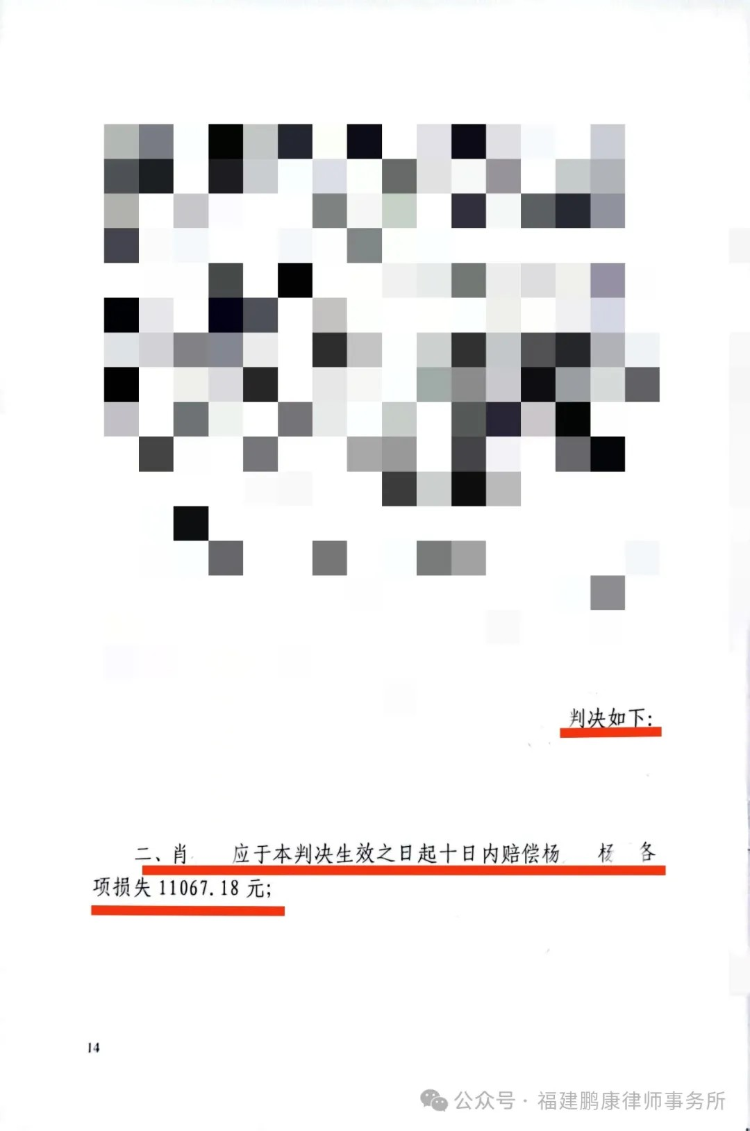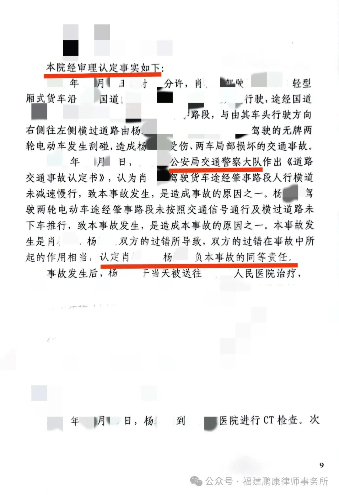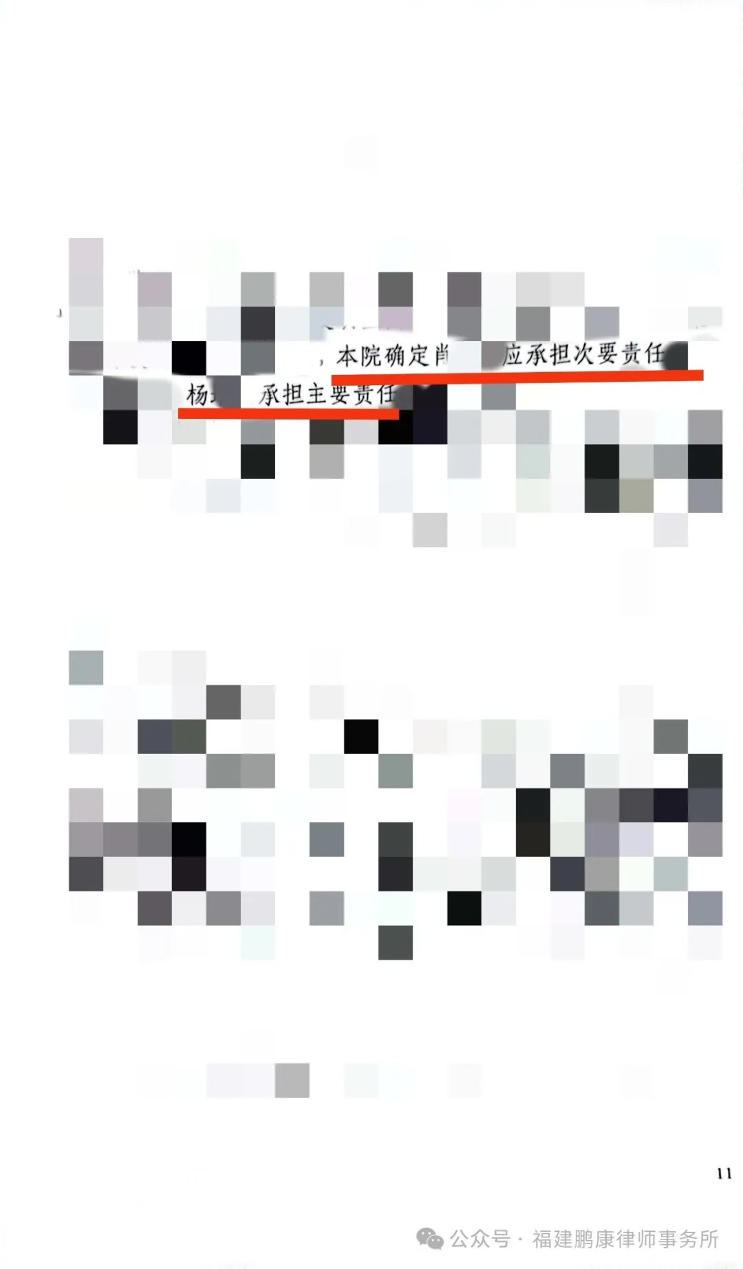 法院最终采纳本所律师的观点,改判了交警的事故认定责任,认定死者承担主要责任,委托人肖某承担次要责任,最终判决委托人肖某只赔偿原告杨某等人1万余元。