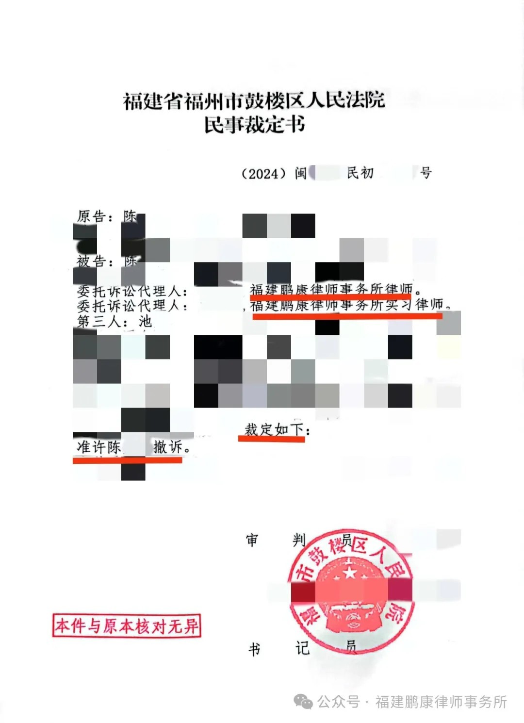 本所律师围绕上述办案思路进行代理,最终原告撤诉。
